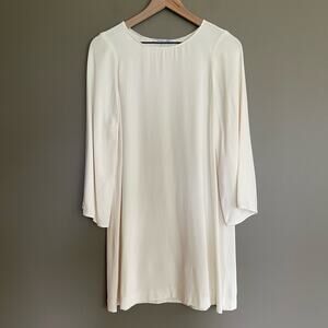 Helmut Lang Long Sleeve Crepe Shift Dress Ivory Cream Size Small Chic Clean Girl