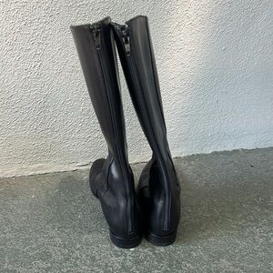 Helmut Lang Luxury Leather Riding Boots Quiet Luxury Classic Equestrian Sz 7.5 in Excellent Pre-Owned Condition. There are signs of wear on the soles but the leather is in great condition and still buttery soft. Perfect for a night on the town or a day in the office. The calf does not have any stretch and measures 13" around at the widest point so please measure your calf to see if they will fit, I have relatively thin claves and they fit like a glove.