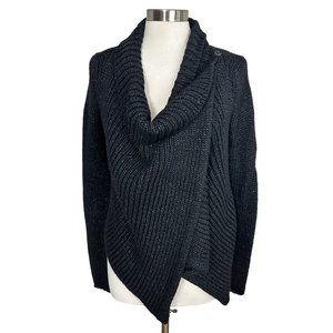 Helmut Lang M Black Ocacity Draped Chunky Knit Asymmetrical Cardigan Sweater