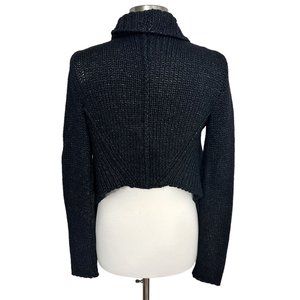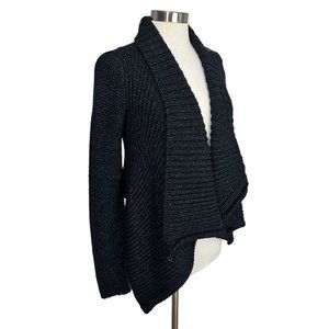 Helmut Lang MEDIUM Black Ocacity Draped Chunky Knit Asymmetrical Cardigan Sweater
