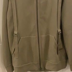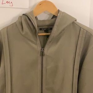 Helmut Lang Leisure Jacket (a full zip hoodie) and shorts has a “deconstructed” vibe to it. The jacket matches the shorts and they have never been worn. The pattern is called Honeycomb Pique. Top is a Large and the shorts are XL. Great for around the pool or just hanging out with friends… sold as a set - color is closer to a Brown/Taupe - actually called “Tawny”.