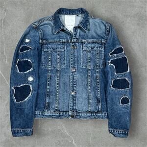 Helmut Lang Men’s MR 87 Large Distressed Grunge Denim Jacket Designer USA Made