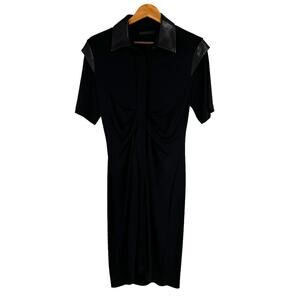Helmut Lang NWT Pleated Leather Trimmed Cady Mini Dress Black Size M Collar