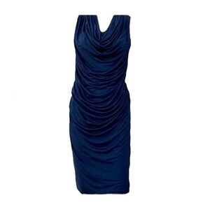 Helmut Lang Navy Blue Draped Jersey Shirt Dress Size S Perfect Condition