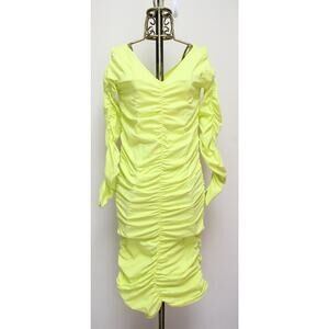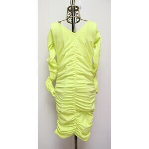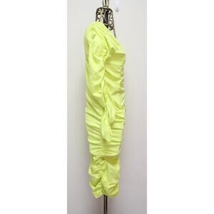 Helmut Lang Neon Acid Lime Green Seamless Ruched Midi Shirt Dress Size M/L