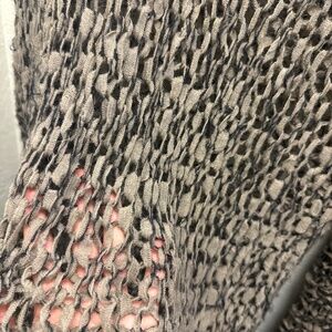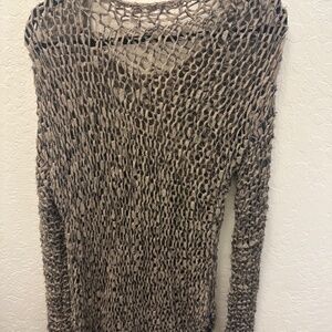 This authentic Helmut Lang taupe-brown open-knit dress features a sheer, net-like texture crafted from a soft wool-blend. With its sculptural drape and stretch fit, it’s perfect layered over a slip dress, bikini, or sleek bodysuit — a true modern statement piece.