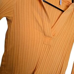 Helmut Lang Orange Ribbed Long Sleeve Blouse
