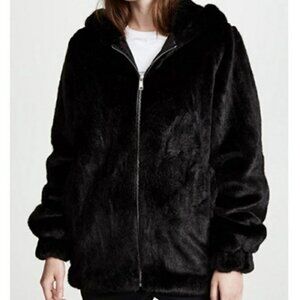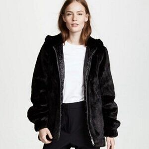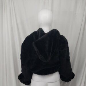 Helmut Lang Oversized Black Faux Mink Bomber Zipper Front Elastic Cuffs Size XS