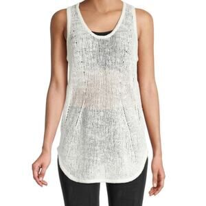 Helmut Lang P Light Heather Gray Silk Open Knit Tank Top Scoop Neck Curved Hem