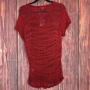 Helmut Lang Red Sweater Short Sleeve Tunic Open Knit Marled Viscose Medium NWT