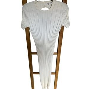 Helmut Lang Rib Knit Bodycon Midi Dress Open Back Short Sleeve Ivory Size Medium