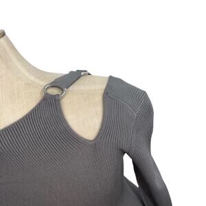Helmut Lang Ring Shoulder Knit Top Sweater Cut Out Gray Silver Size XS