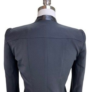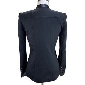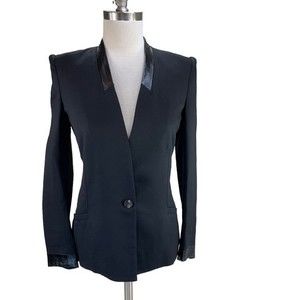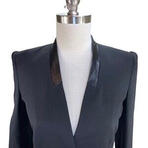 Helmut Lang Silk Blend Leather Trim Lapelless Black Blazer Jacket 0 Collarless