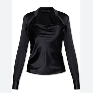 Helmut Lang Size XS Silk Satin Collared Long Sleeve Top In Black New With Tags
