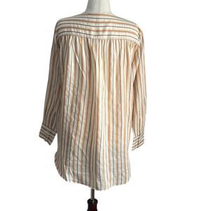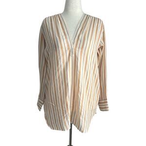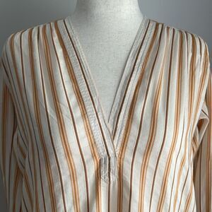 Helmut Lang Striped V-Neck Tunic Blouse Orange Brown White Cotton Blend Size S