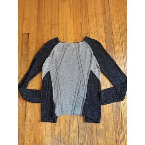Helmut Lang Sweater Womens Small Gray Black Colorblock Open Knit SHK0073 Raglan