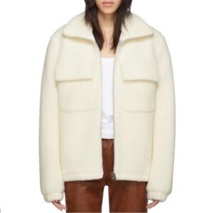 Helmut Lang Teddy Fur Bomber Wool Full Zip Jacket Size Small