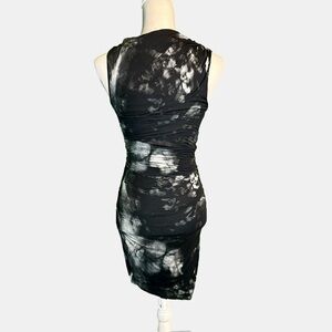 Helmut Lang ‘To Dye For’ Black / Gray Tie Dye Asymmetric Neckline Bodycon Dress