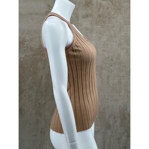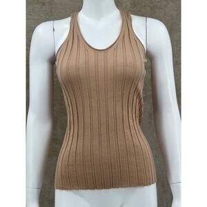 Helmut Lang Top Women XS Tan 100% Wool Ribbed Sleeveless Tank Knit Fitted Staple