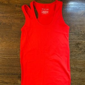 Cool Helmut Lang top with split shoulder strap on the right side, bright red