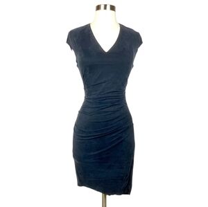 Helmut Lang Torrent Dress Washed Black Ruched V Neck Midi Size Small