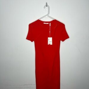 Helmut Lang Twist Asymmetric T-Shirt Dress Poppy Red Women’s XS $395. New with tags.