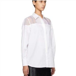 Elevate your wardrobe with this stylish white woman’s shirt featuring elegant sheer panels. Perfect for both casual and formal occasions. Semi-sheer silk organza and cotton poplin shirt. Great condition - worn once.