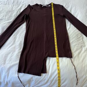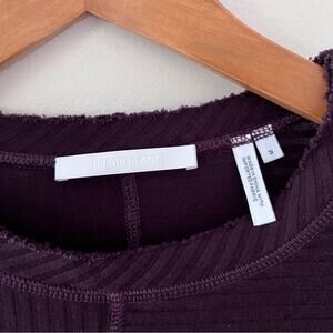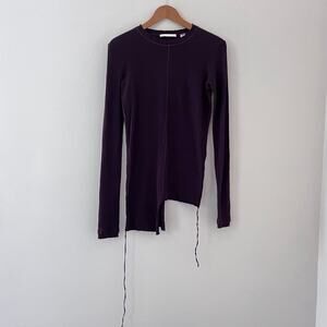 Helmut Lang Wine Purple Long Sleeve Asymmetrical Raw Hem Ribbed Crew Top Small