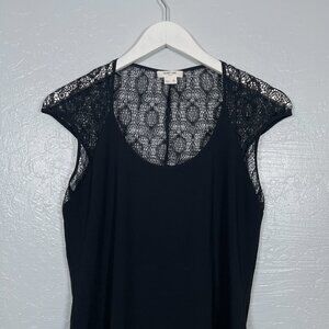 Helmut Lang Women M Black Puckered Lace Blouse Cap Sleeve Scoop Neck Casual