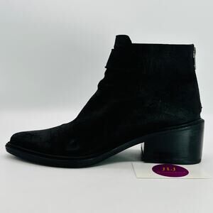 Helmut Lang Women's Black Oiled Leather Block Heel Ankle Booties Size 38 EU/ 8 US