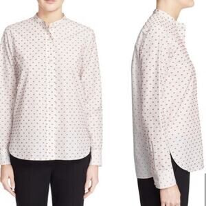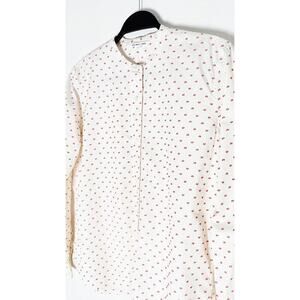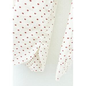 Helmut Lang Women's Button Cotton Up Blouse Cream White Stripe Red Fil Coupe Dots