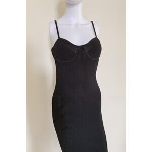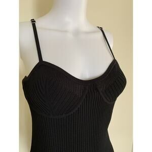 Helmut Lang Womens Dress Black Sleeveless Rib Knit Underwire Bodycon Medium Midi
