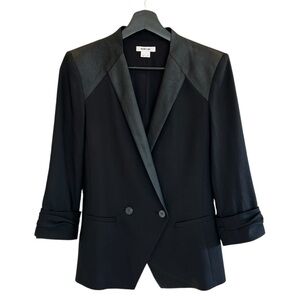 Helmut Lang Wool Leather Panel Blazer Black 2 Ruched Sleeves Contemporary Chic