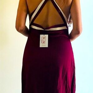 Soft athletic materials- knee length - criss cross back. Fits S or M brand can run small