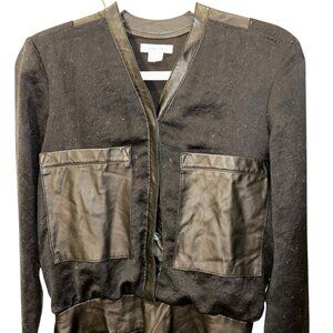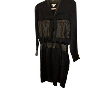 Helmut Lang black Lamb leather trim deep V Shift Dress 4