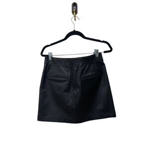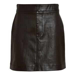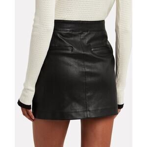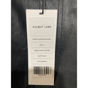 A biker girl staple, Helmut Lang's sleek mini is crafted for a smooth stretch lather. Elasticized waist band. Faux zip fly. Back welt pockets. Fully lined.