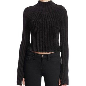 Super soft and stretchy black rib knit fuzzy sweater from Helmut Lang.