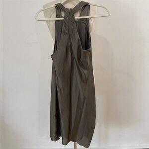 Gathered in some areas. Never worn but got a little loose thread shown in picture. Size 2. Zipper back and racer back style.