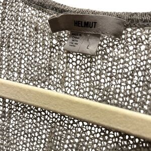 Helmut Lang gray khaki 100% ALPACA v-neck asymmetrical hem sweater L