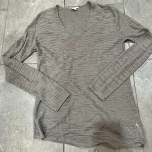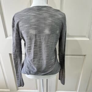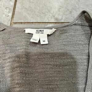 Helmut Lang, lightweight grey sweater, slight asymmetrical hem, long sleeves, needs camisole or tank underneath, great for in-between seasons,