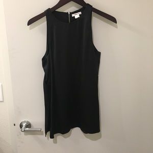 Black silk charmeuse layered sleeveless top. Back has zipper detail.