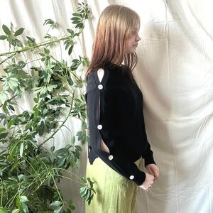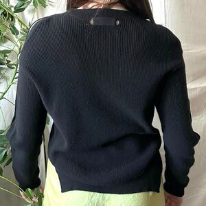 Helmut Lang Cashmere Blend Black Ribbed Sweater w/ Buttoned Peekaboo Sleeves