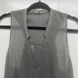 Helmut women's gray top. V-neck. Sleeveless. Button down. Side slits. High-low hem. Lightweight and see through. In good used condition. No stains, tears or holes.