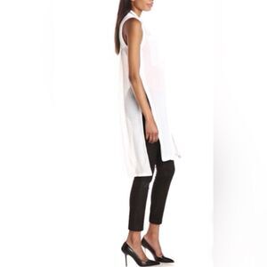 Elevate your wardrobe with the Helmut Lang Swift Sleeveless Tunic, a modern take on classic tailoring. This longline, sleeveless shirt features a crisp button-down front, pointed collar, and a minimalist silhouette in optic white.