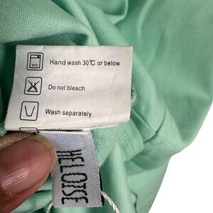 This elegant sleeveless dress features a delicate lace yoke, providing a sophisticated touch to the ensemble. Its flared skirt adds a classic silhouette, making it suitable for formal or semi-formal events. The dress's subtle green hue adds a fresh and calming vibe, enhancing its timeless appeal.