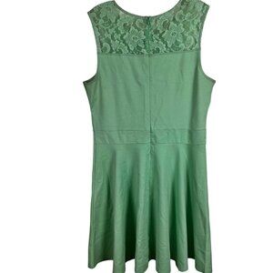 Heloise Fashion Size XL Womens Sleeveless Green Dress With Lace Yoke & Flared