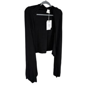 Helsa Cashmere Open Front Cardigan Shawl in Black embodies quiet luxury with its minimalist silhouette and soft cashmere knit. Perfect for layering, this timeless sweater adds understated elegance to any modern wardrobe.