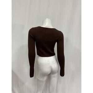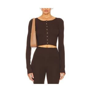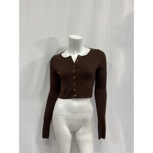 Elevate your style with this chic brown ribbed cardigan. Featuring a button-up design, it's perfect for layering and adding warmth to any outfit.