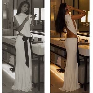 Helsa Constantina Long Sleeve Bow Cutout Ruched Draped Jersey Maxi Dress Sz XL is brand new with tags! Sold out everywhere and the perfect wedding, bridal or special events dress! Seen on multiple influencers and such a stunning and flattering silhouette! Featuring: