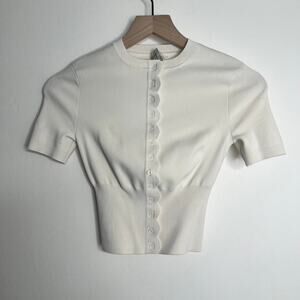Helsa Elvira Cardigan Crop Button Down Top in Cream Womens XXS